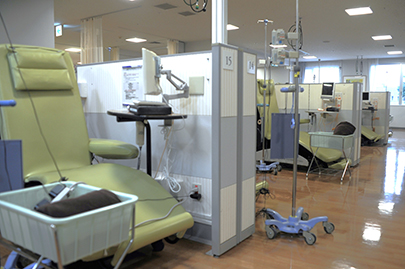 Our hospital was a pioneer among other hospitals, and began offering chemotherapy on an outpatient basis in 2002. Dedicated doctors, nurses, and pharmacists work as a team, maintaining close contact with the attending physicians in each department, in pursuit of safe chemotherapy.