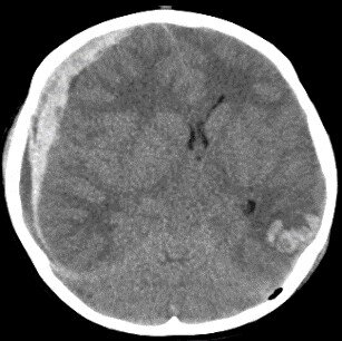 当院は3次救急に対応しており、神奈川県ドクターヘリの基地病院です。そのため、多くの頭部外傷の患者さんを受け入れています。救命救急科と連携して速やかな治療を提供しており、特に頭部単独外傷の場合には手術室搬入までの時間を30分以内とするよう心がけて日々努力しています。(画像は急性硬膜下血腫・脳挫傷・気脳症の患者の頭部CT)