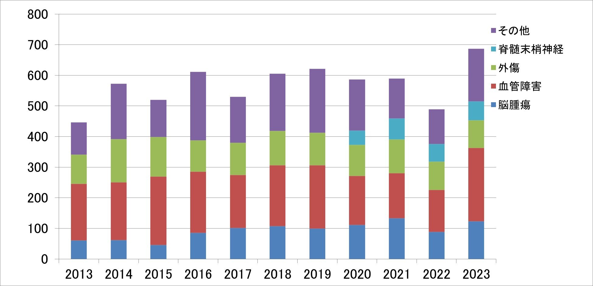 図1.2013年から2023年の脳神経外科の手術件数の推移