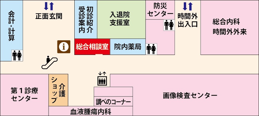 Illness or injury can cause various worries and anxieties in daily life. At General Consulting Office, specialized medical social workers (certified social workers) are available to provide consultation to patients and their families at such times. Depending on the content of the consultation, we will consult with doctors, nurses, public health nurses, registered dietitians, pharmacists, etc., and will also refer patients to government agencies, counseling agencies, and medical institutions as necessary.
