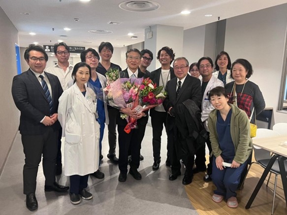 講演終了後には、本年度で退職となる本多先生をはじめ脳神経外科病棟のメディカルスタッフの退職者とともに送別会が催されました。なお、反町教授は今後も客員教授として本学にも籍を置かれ、本多先生は特任准教授として八王子病院へ勤務することが決定しております。皆様の長年にわたるご尽力に深く感謝申し上げます。